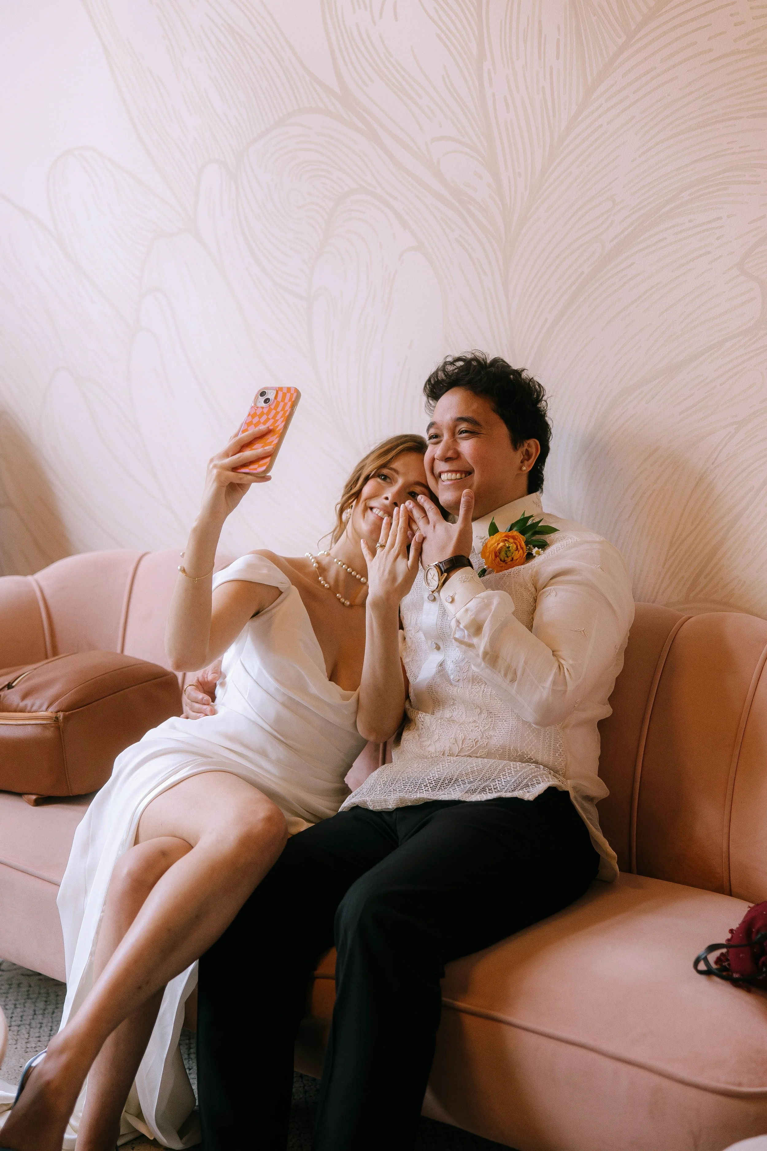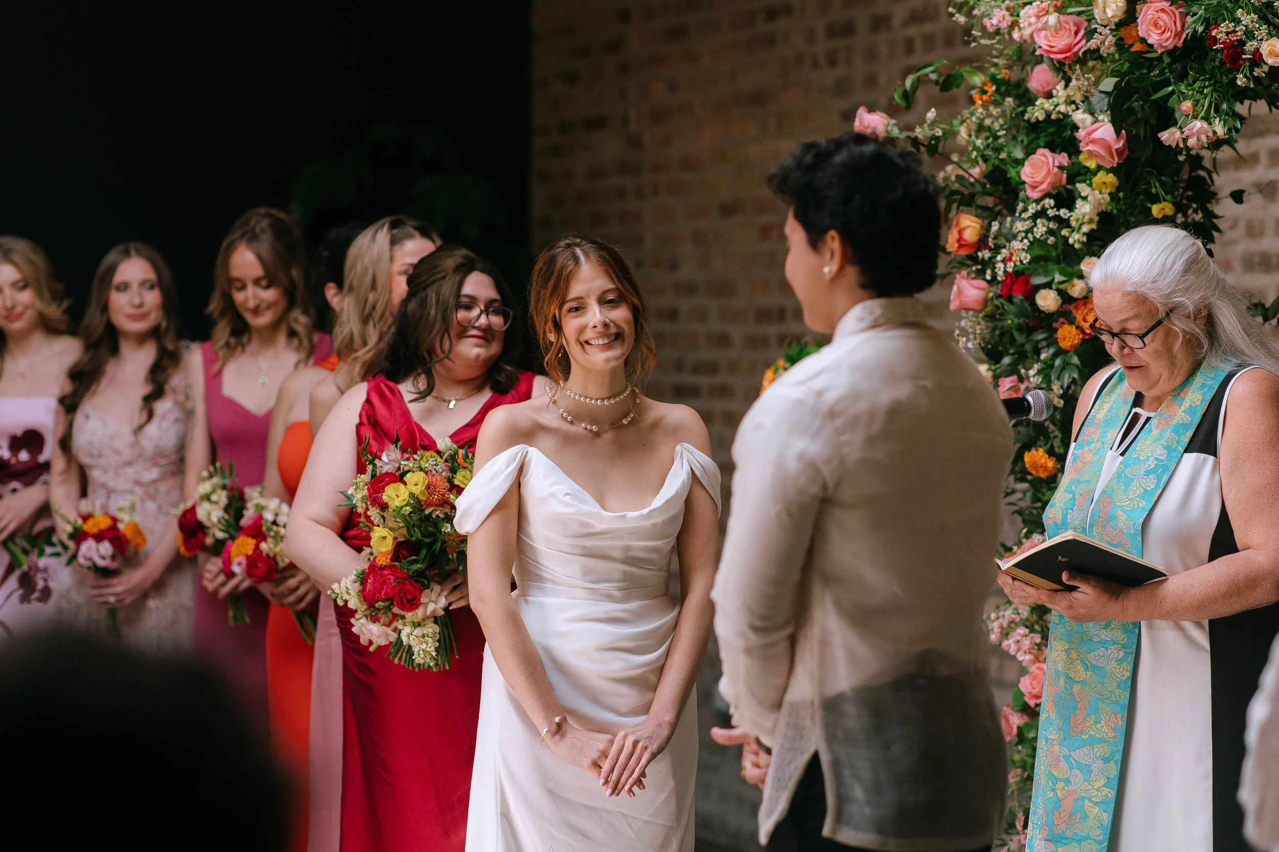 The wedding party stood in a mix of textures and tones—groomsmen wearing traditional Barongs, bridesmaids in bright pinks and oranges for their joyful summer weather. It moved with intention, framed by family traditions and the elegance of the space.