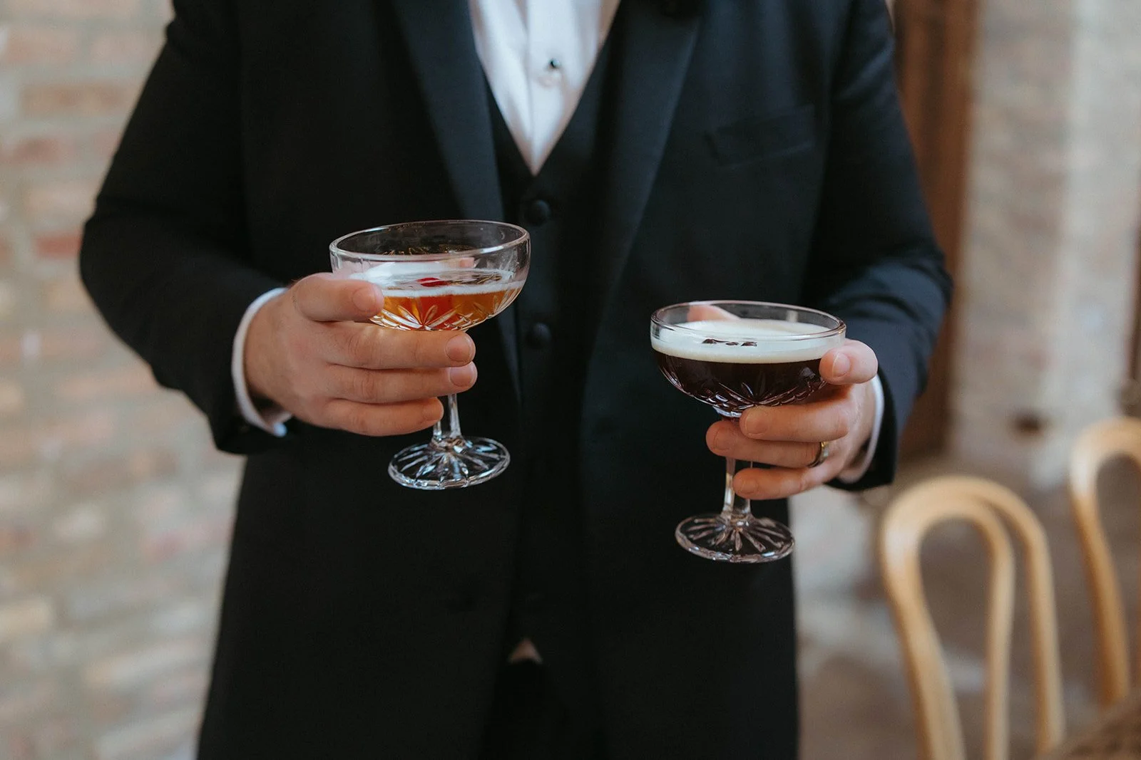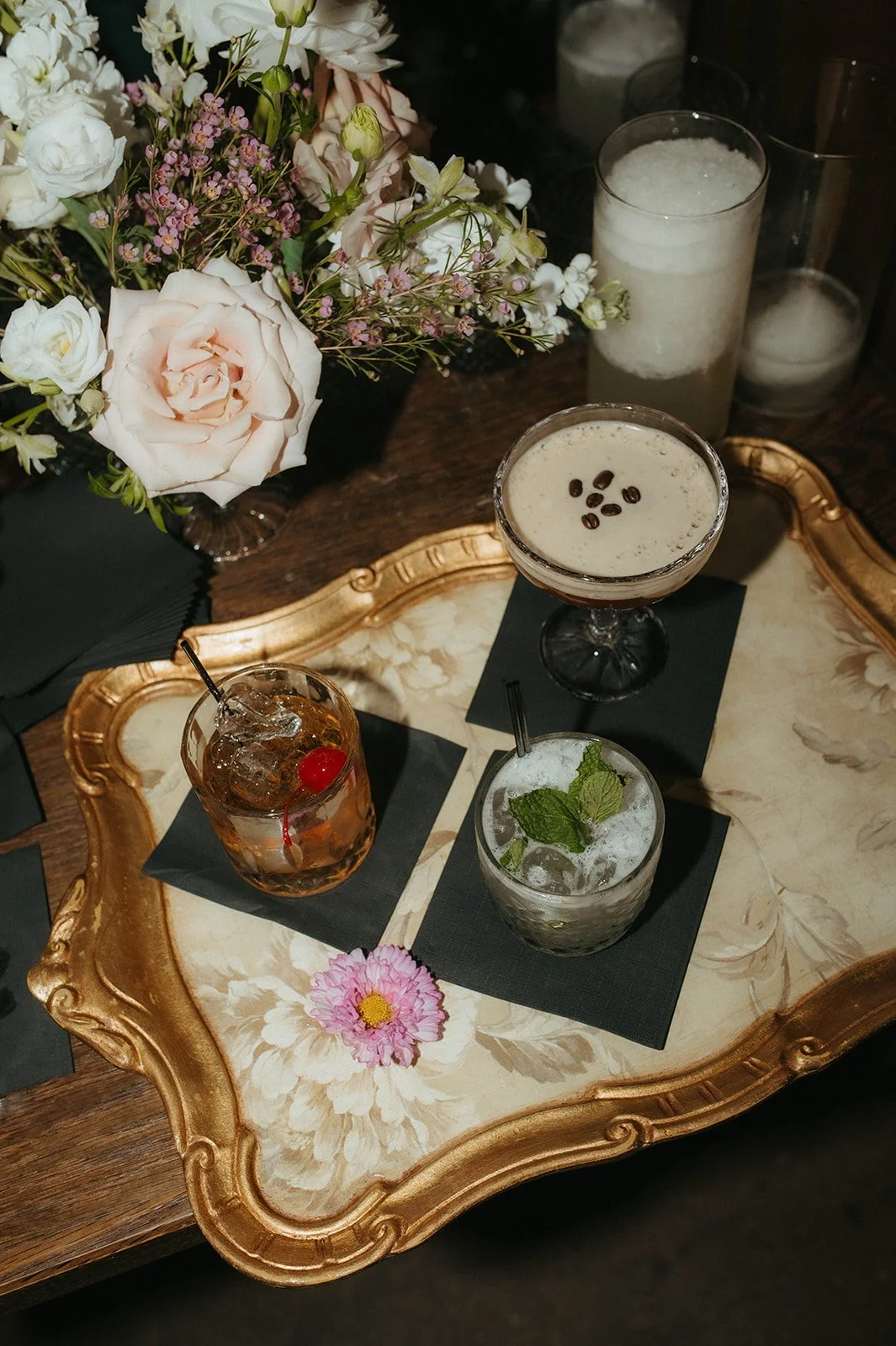 Strums from Matt Keen's acoustic guitar floated through the space as guests sipped on signature drinks designed with intention. A blended mint lemonade with orange blossom water honored Emily's Lebanese heritage, and Michael chose a classic rye Manhattan.