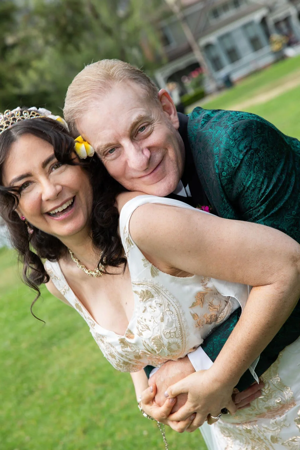 As bubbles drifted through the air and sunlight moved across the garden, Fiona walked toward Doug with a bouquet that nodded to her Hawaiian roots. It was tender and emotional and exactly the kind of moment that becomes an heirloom.