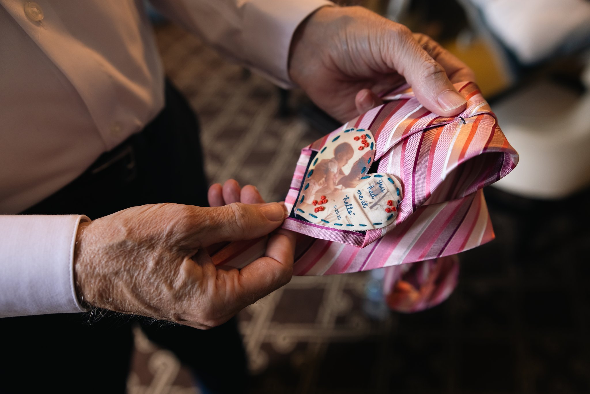 Before the ceremony, Hilary shared a quiet moment with her dad. She gifted him a custom tie that read “you had me at hello,” printed with a photo of her as a little girl in his arms. It was a tender reminder of all the years he had held her close, guided her, and loved her fiercely, even as she stood there grown, ready to celebrate the love of her life and the next chapter ahead.