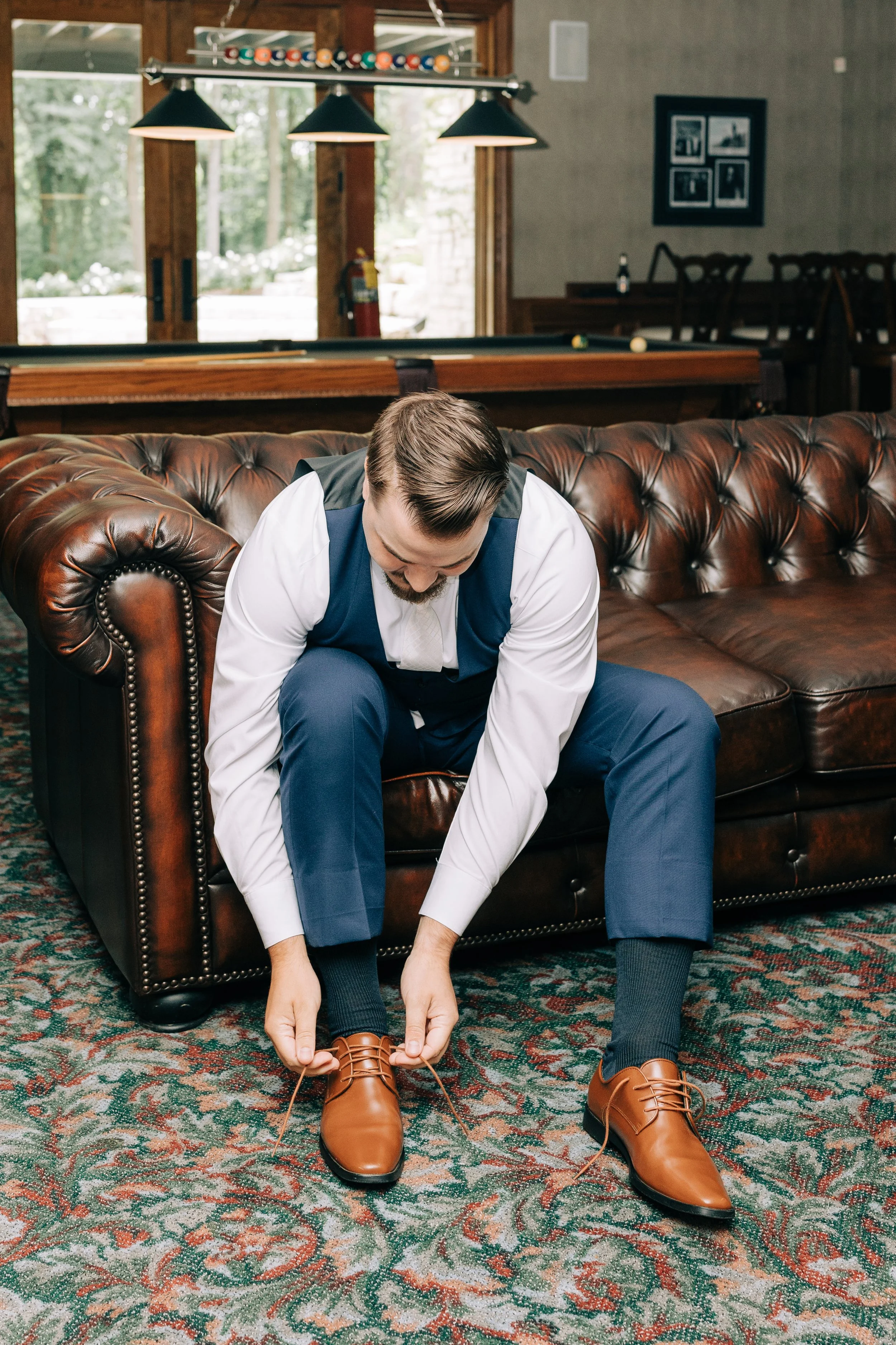 Cole and his groomsmen got ready in the grooms suite, dressed in crisp navy suits that felt classic and clean against the estate's historic backdrop.