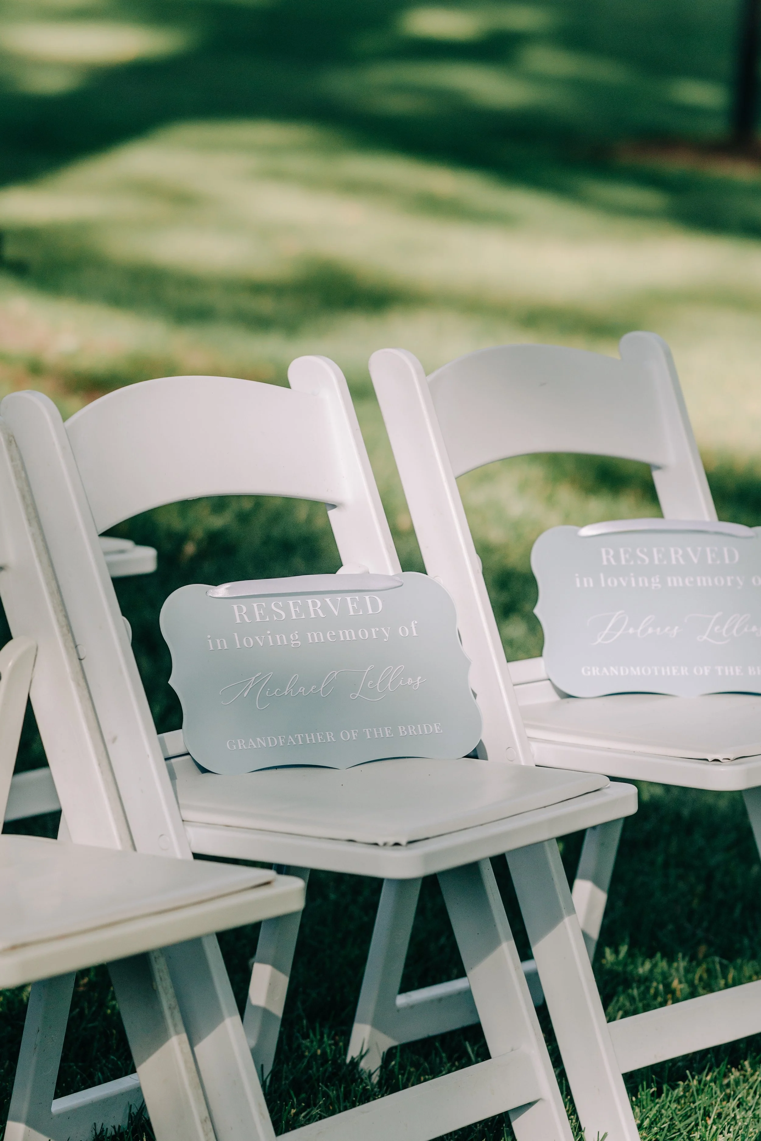 Reserved seats at the front honored Paige's father and grandfather, a subtle but meaningful gesture that reflected how thoughtfully the day was shaped. Paige also honored her father with charms on her bouquet.