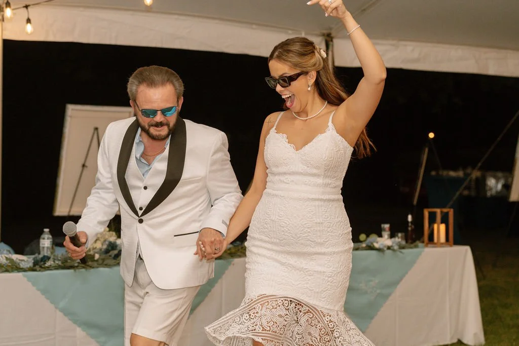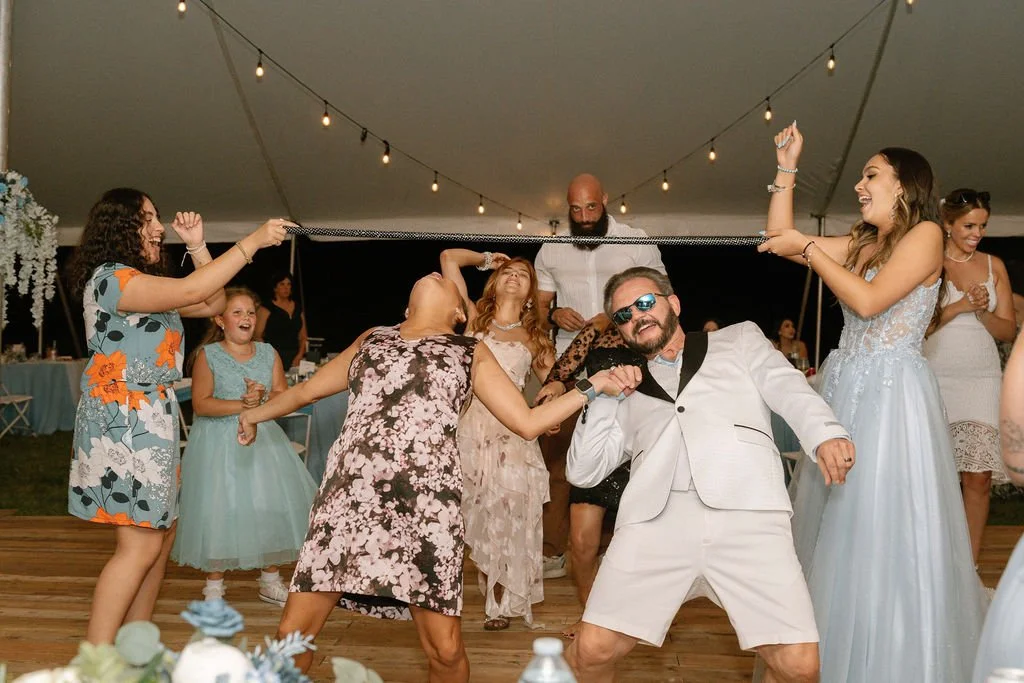 The energy continued as the dance floor opened. Instead of a traditional first dance, the celebration kicked off with the limbo. The lawn was filled with laughter as guests showed off their skills.