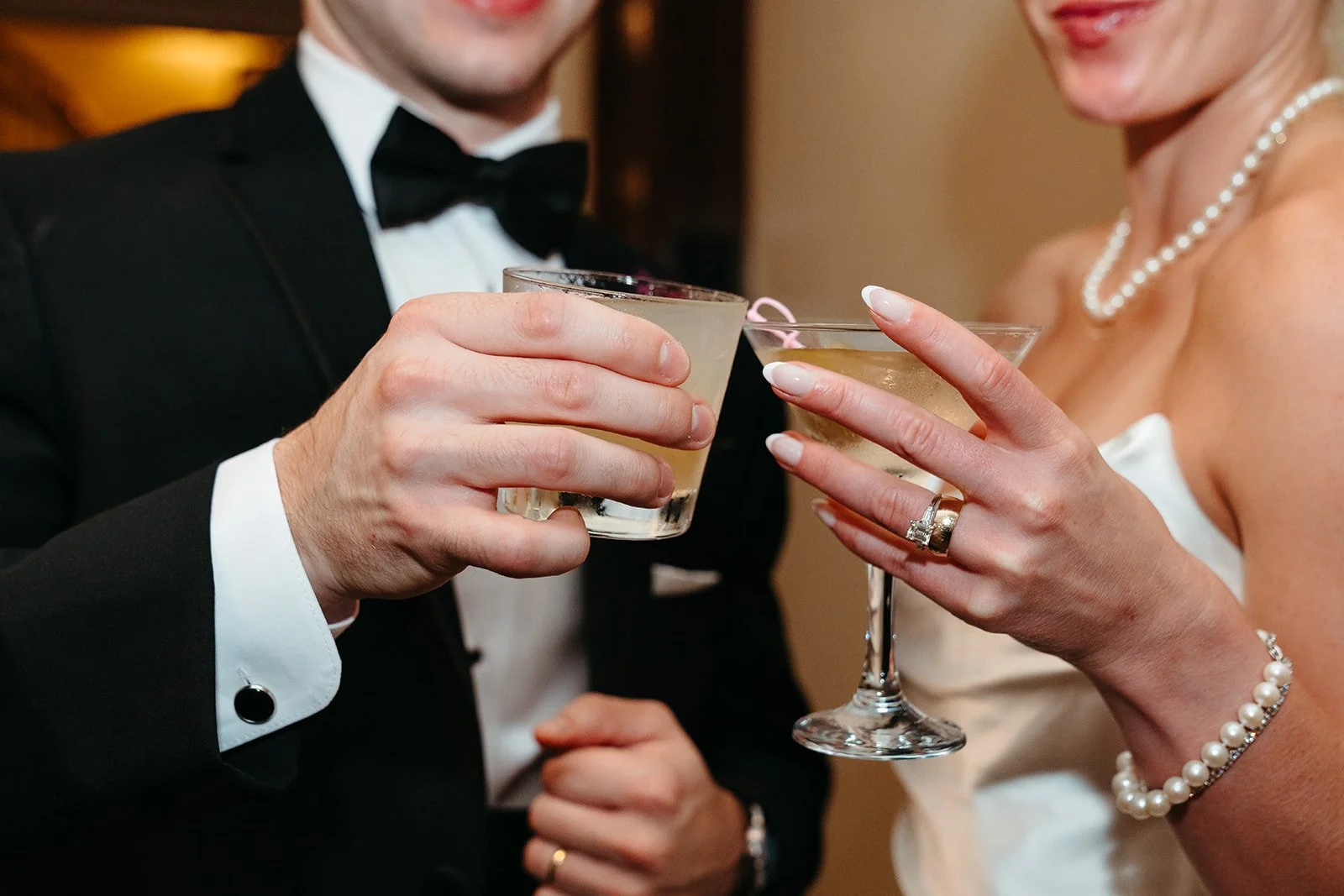 Our couple added several upgrades to personalize the evening, including a premium bar package, signature cocktails (a margarita and a dirty martini), and late-night snacks featuring Chicago favorites from Lou Malnati’s—thin-crust pizza and mini Chicago-style hot dogs.